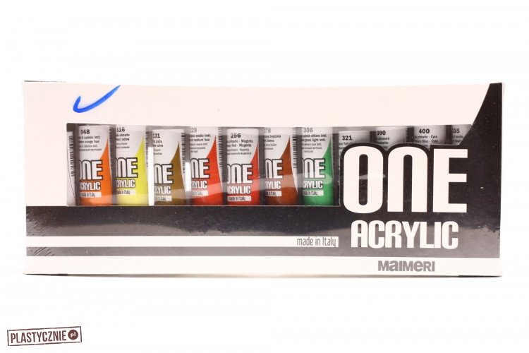 Farby Maimeri ONE Acrylic to gama 42 kolorów idealnych dla początkujących artystów oraz studentów, o bardzo dobrej jakości. Zostały stworzone zachowując niewiarygodną równowagę żywicy akrylowej i pigmentu, w rezultacie otrzymując produkt zapewniający doskonały stosunek ceny do jakości, bardziej niż jakiekolwiek inne podstawowe farby akrylowe. Farby są na bazie wody, nie zawierają rozpuszczalników ani innych komponentów szkodliwych dla środowiska.